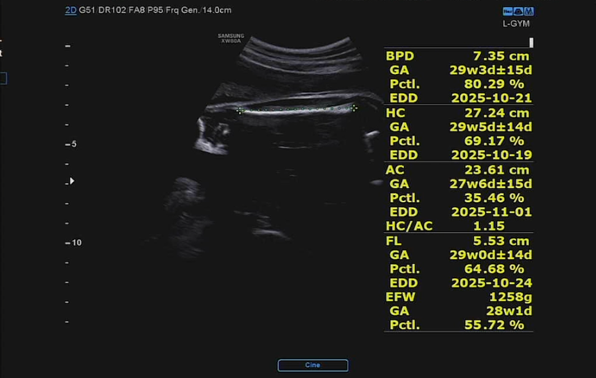 - 의미: 태아 머리의 좌우 폭을 측정한 값으로, 정상 범위이며 발달이 비교적 큰 편입니다.