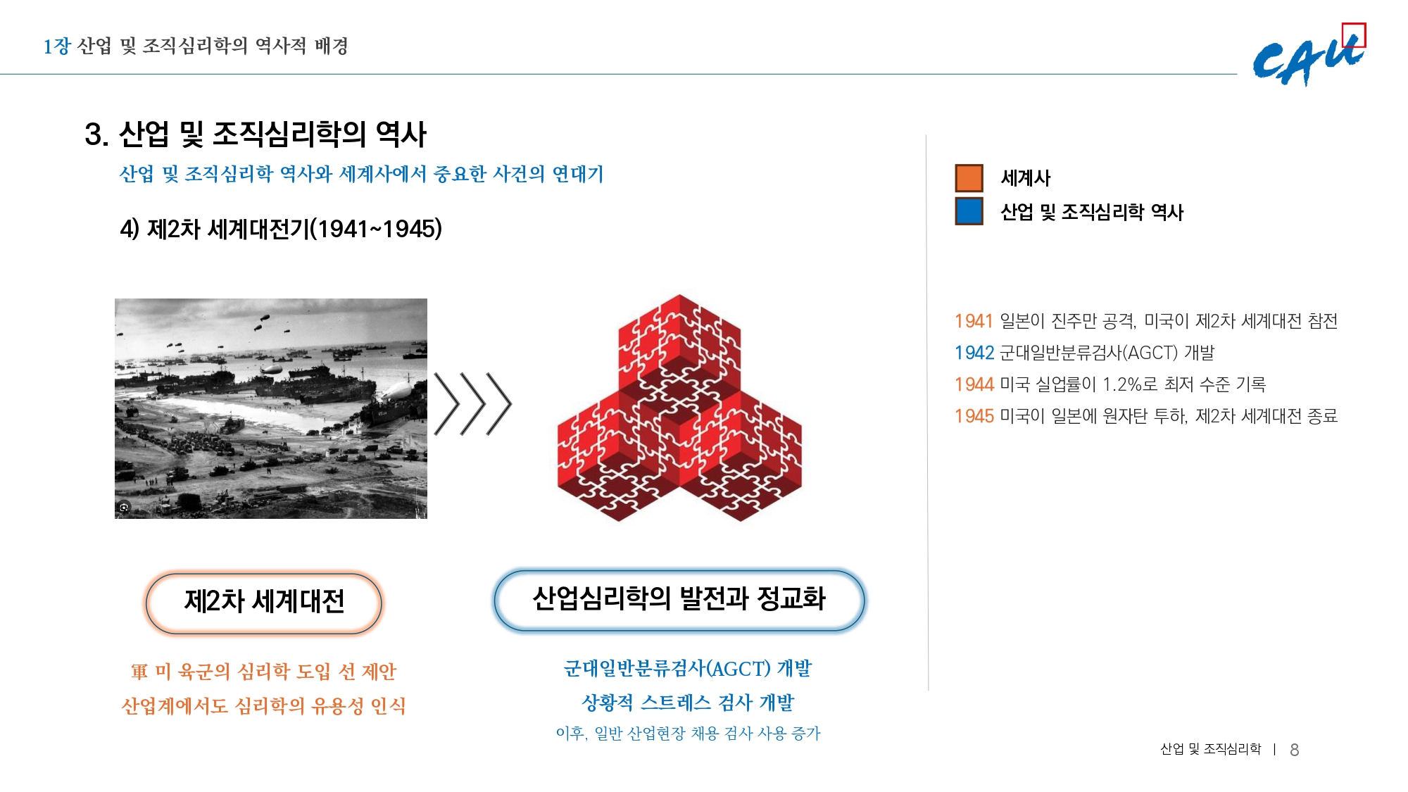 산업 및 조직심리학의 역사와 세계사에서 중요한 사건의 연대기는 산업 및 조직심리학이 현재까지 어떻게 발전해왔으며 중요한 인물과 사건들이 산업 및 조직심리학의 형성에 어떻게 기여했는지를 보여준다.