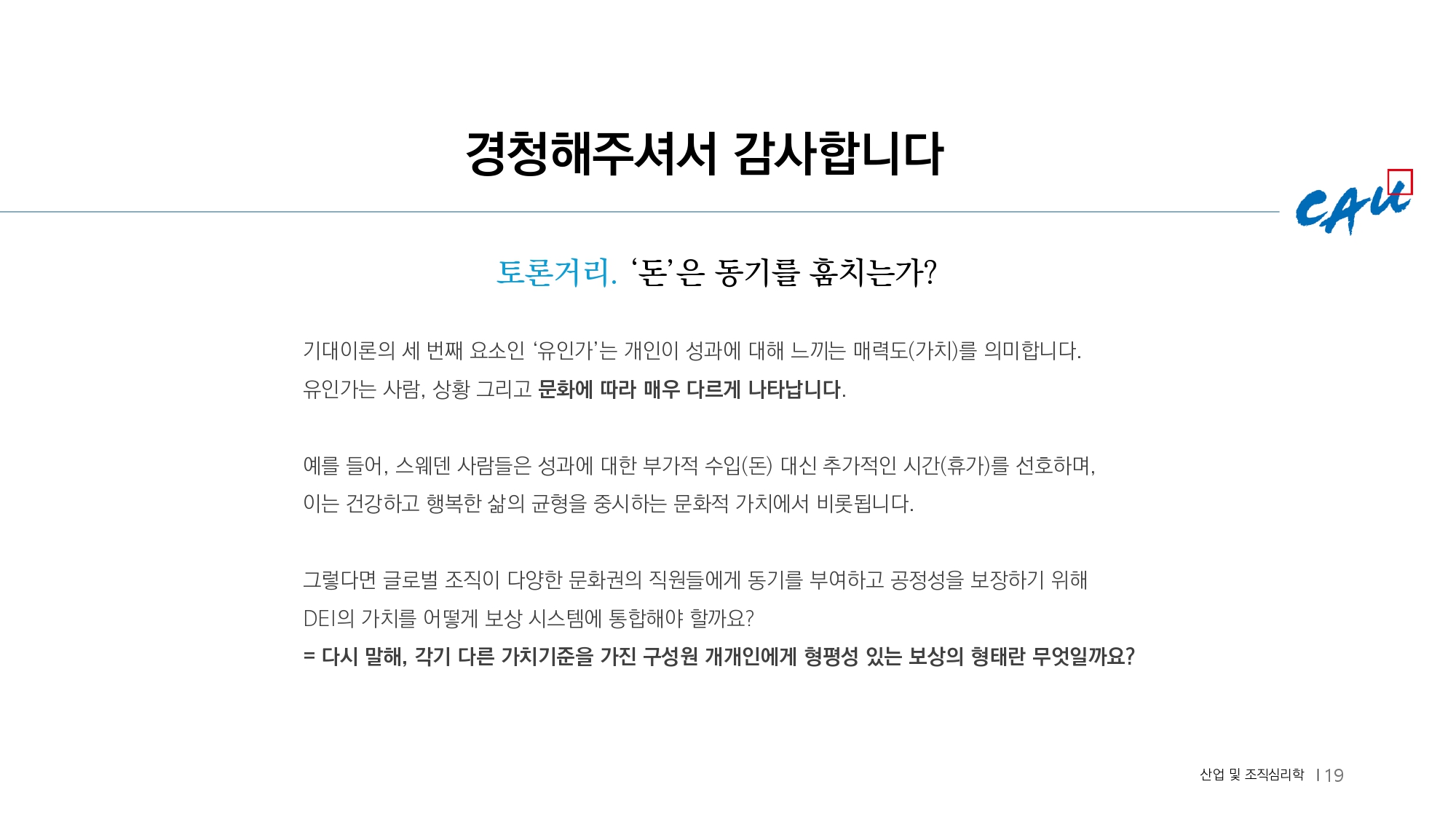 3. 유인가: 특정 보상에 대해 개인이 느끼는 매력의 정도 “그 보상이 나에게 가치가 있는가?”
