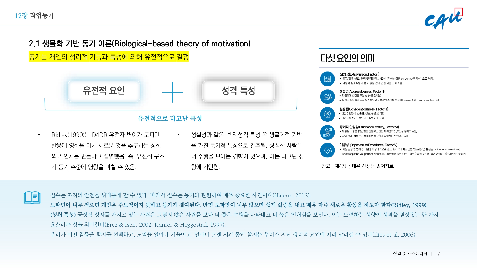 먼저 생물학 기반 동기 이론. 이 이론은 동기가 개인의 생리적 메커니즘과 유전적으로 타고난 특성에 의해 결정된다고 본다.